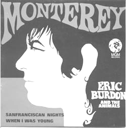 Eric stopt natuurlijk niet. Hij gaat de studio in en maakt een LP met nummers van onder andere Randy Newman en Carole King. Als uitvoerende artiest wordt een band genoemd die dan nog niet bestaat: Eric Burdon and the Animals. Midden oktober 1966 heeft Eric echter de leden bij elkaar: Vic Briggs (gitaar), John Weider (viool), Danny McColloch (bas) en voormalig Animals drummer Barry Jenkins. Hun eerste single, 'When I was Young' wordt opgenomen in januari 1967 en de maand daarna begint een tour door de US en Australië. Op het hoogtepunt van het Hippie tijdperk spelen ze in juni 1967 op het Monterey Pop Festival prachtige covers van Paint it Black en Gin House Blues.